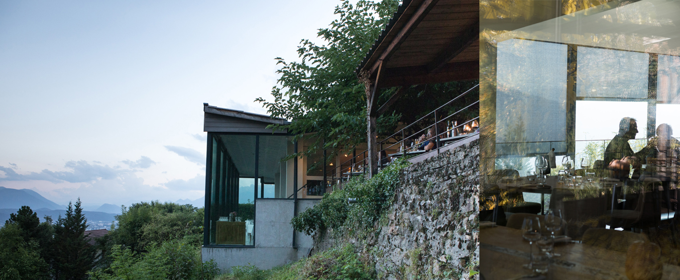 la chaîne de Belledonne et la ville de Grenoble. En terrasse couverte d’une pergola, on profite de la vue sur